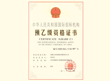 • 中華人民共和國政府采購代理機構乙級資格證書